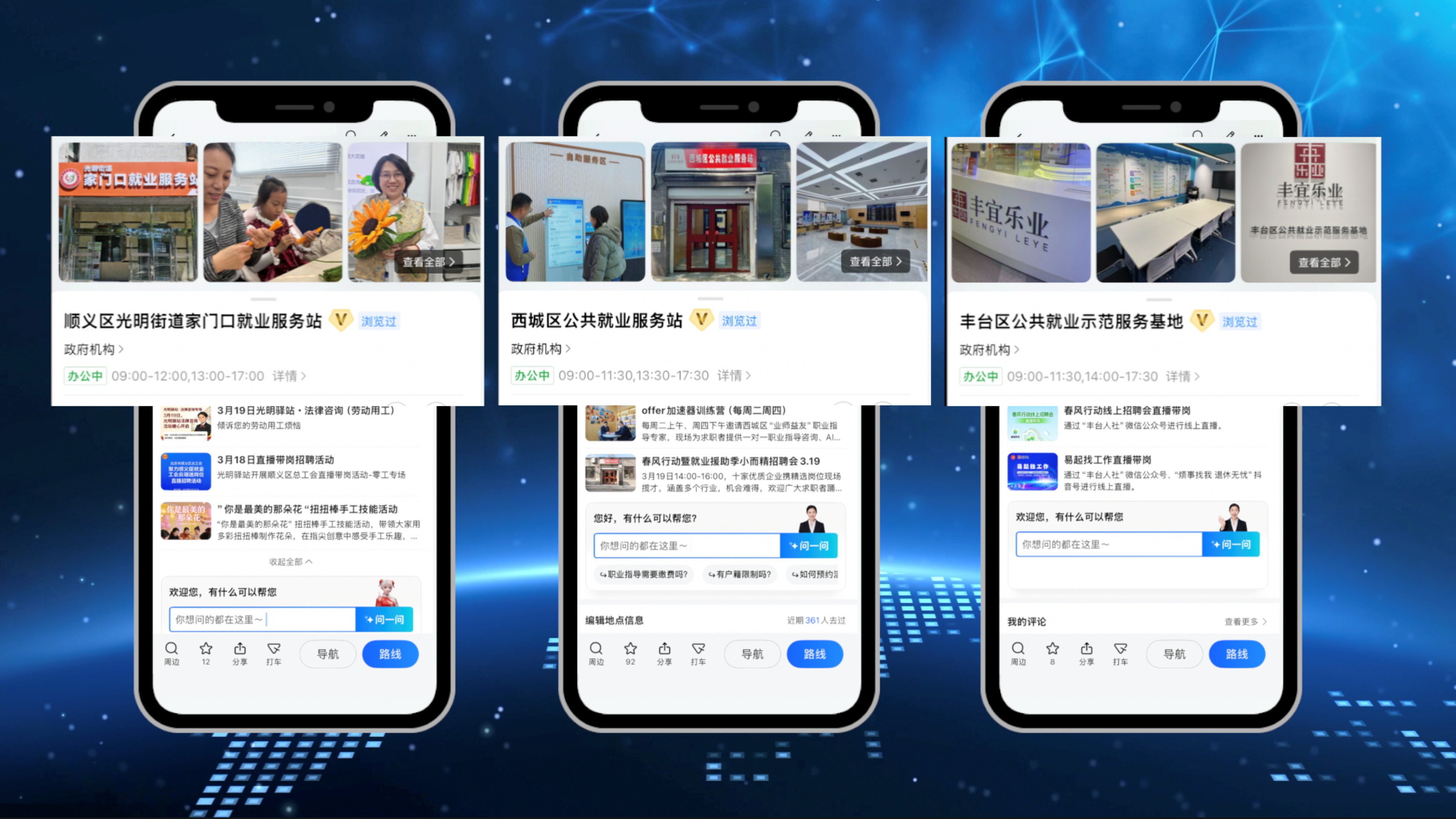 Недавно Управление трудовых ресурсов и социального обеспечения города Пекин совместно с сервисом Amap представило «Карту общественных услуг в сфере занятости столицы» – единый ресурс, объединяющий все городские центры занятости, рынки временной занятости, учебные заведения и центры оценки квалификации. Благодаря этому карта стала единой цифровой платформой, обеспечивающей комплексное решение задач по трудоустройству на всех этапах.Соискатели могут открыть приложение Amap, ввести в поисковой стро