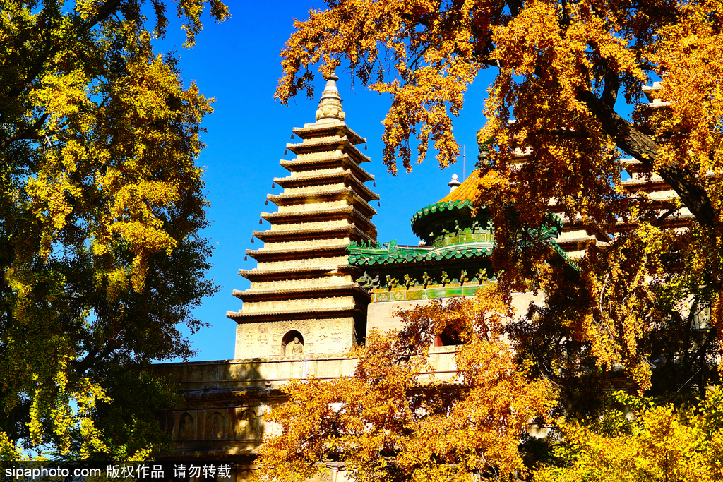 Пекин, 27 октября /Синьхуа/ -- Пекинский музей искусства резьбы по камню, расположенный на территории Храма Пяти Пагод, зафиксировал растущее число туристических посещений в позднюю осень, когда многочисленные деревья гинкго окрашиваются в желтый цвет и образуют золотистое море листьев.