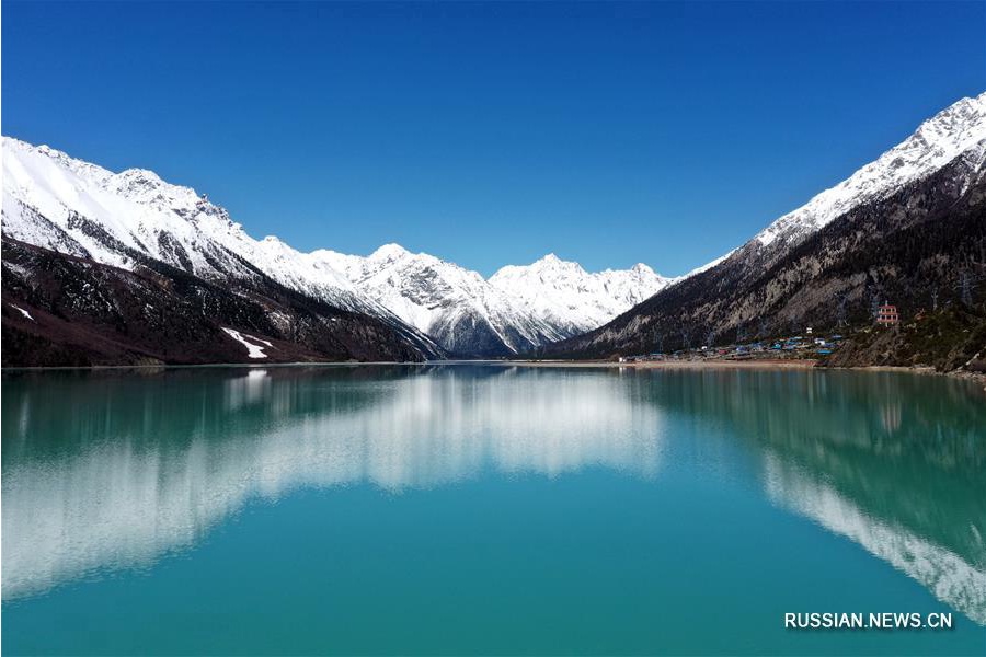 Лхаса, 27 апреля /Синьхуа/ -- На фото -- окруженное горами живописное озеро Ранву-Цо в уезде Баше Тибетского АР /Юго-Западный Китай/. Фотографии Синьхуа/Чжань Янь