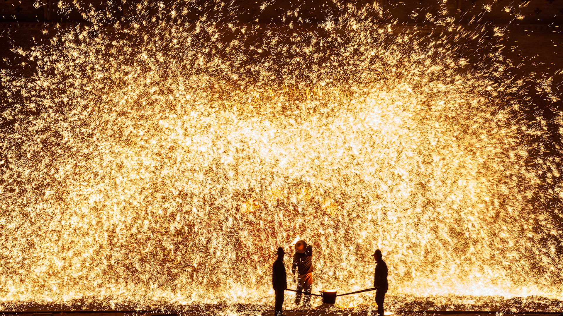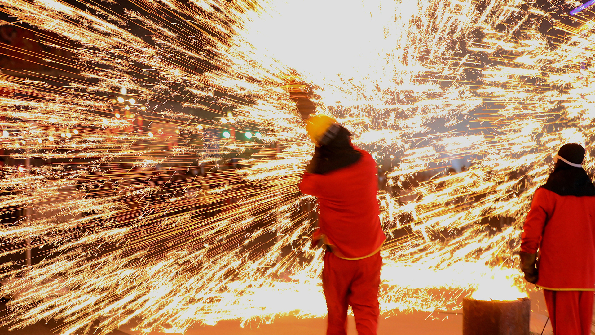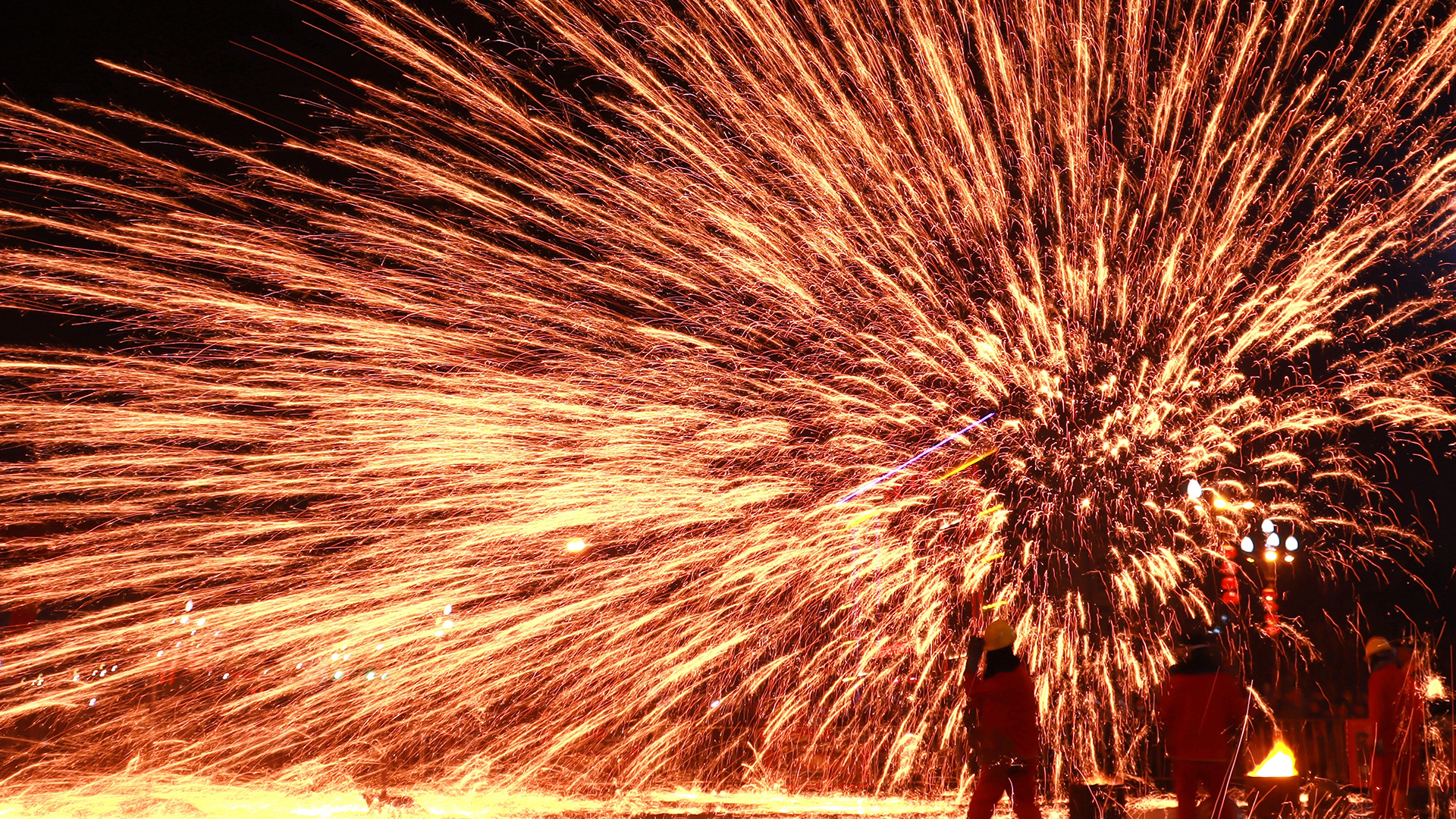 В городе Мэйшань провинции Сычуань на юго-западе Китая народные мастера устроили фейерверк из расплавленного железа. Это шоу столь же красивое, сколь и опасное: раскаленный до тысячи градусов металл деревянной палкой подбрасывается в воздух, где он мгновенно превращается в тысячи золотых искр. Такие фейерверки устраивают в Китае уже более тысячи лет. Полюбоваться ими можно в нашей фотоподборке.
