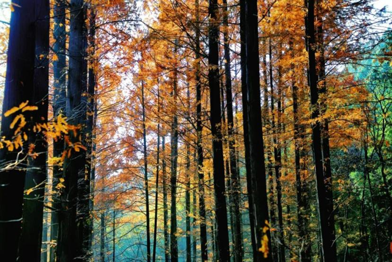 Оптимальный угол обзора: участок между павильоном Вэньшаньтин и древними стволами метасеквойи