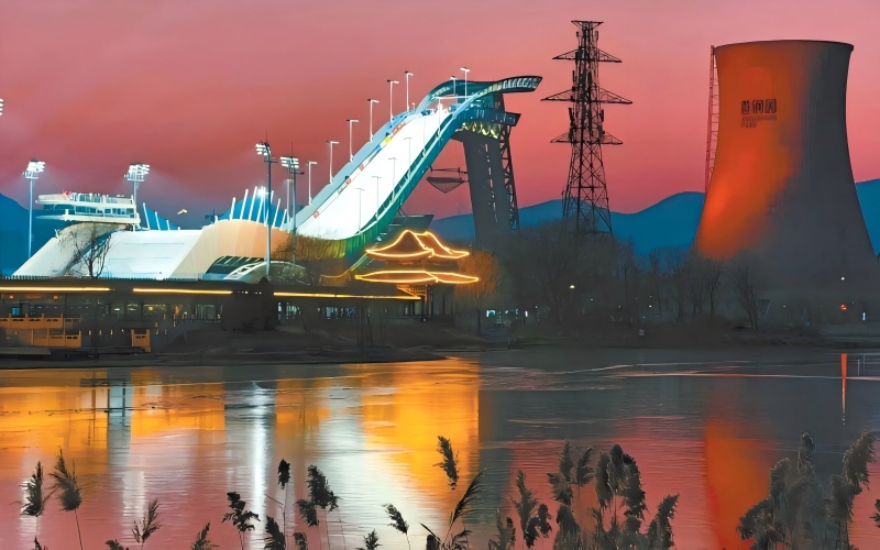 Трамплин «Биг-эйр Шоуган» («Сюэфэйтянь») на закате