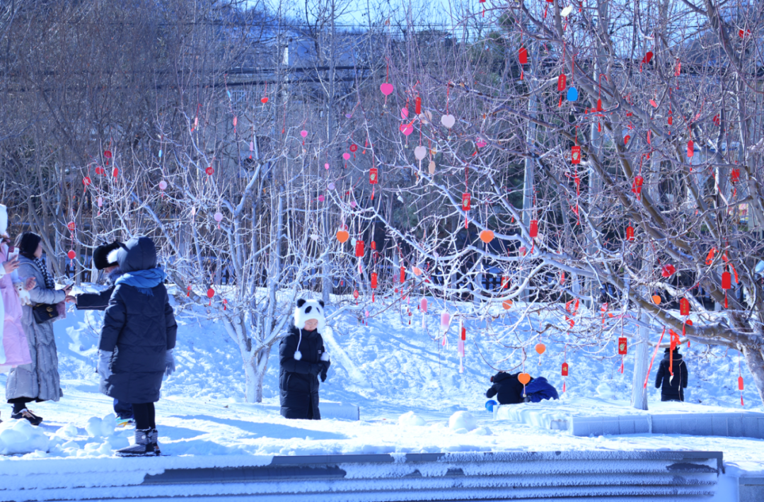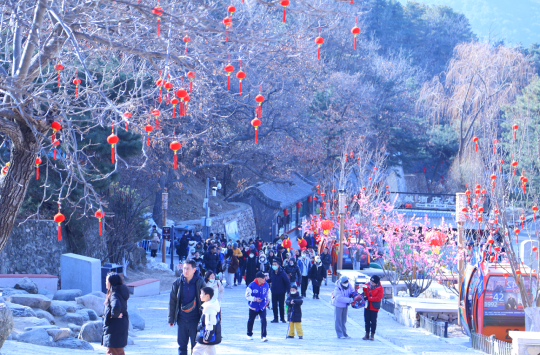 Зима в Мутяньюй скрывает в себе двойную романтику – величественное великолепие извилистой Великой китайской стены и безмятежное спокойствие заснеженных пейзажей. С приходом Весеннего фестиваля эта романтика наполняется еще большей радостью и волнением. Деревья на площади, одетые в красочные «новые наряды», колышут ветвями, приветствуя гостей со всего мира. Гирлянды из изысканных красных фонариков развеваются на ветру, наполняя долину тоской по воссоединению. Куда ни глянешь, везде царит атмосфера новогоднего ритуала!