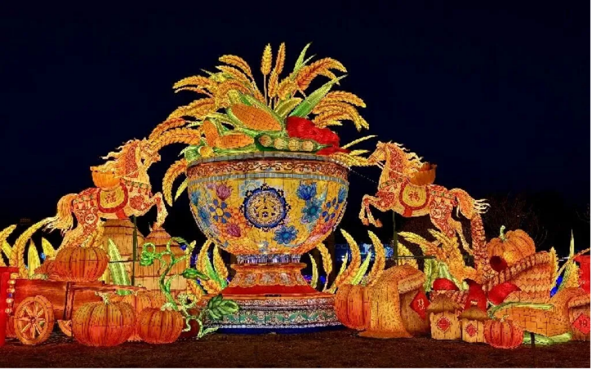 Для карнавала было создано более ста знаковых световых композиций. На площади у восточного входа в парк установлена 12-метровая композиция «Свет благословения озаряет поднебесную, соединяя судьбы по всему миру», в которой использованы традиционные элементы Китая – узоры «благоприятные облака» и китайские узлы, символизирующие семейное единение, гармонию и сплоченность.
