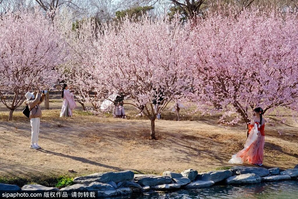 По мере постепенного потепления погоды по всему Пекину начинают распускаться горные персики. Персики Давида в парке Бэйхай обрамляют Белую пагоду, западный берег Летнего дворца предлагает великолепные виды, пейзаж Улин в Старом Летнем дворце и дикий шарм цветочных полей в Олимпийском лесном парке...Каждая сцена захватывает сердце и вызывает восхищение.