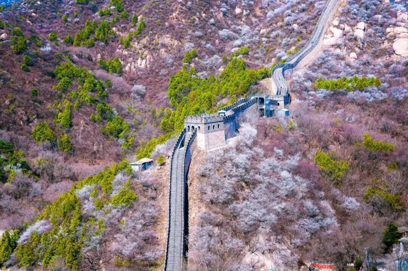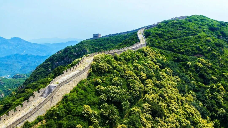 В конце весны Великая Китайская стена окружена зеленым ландшафтом и выглядит особенно энергично. С наступлением темноты освещение извивается вдоль городской стены, создавая особое очарование.