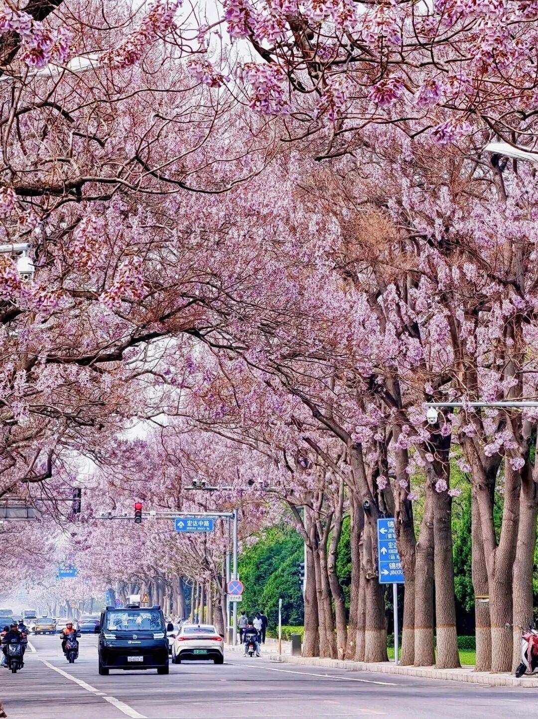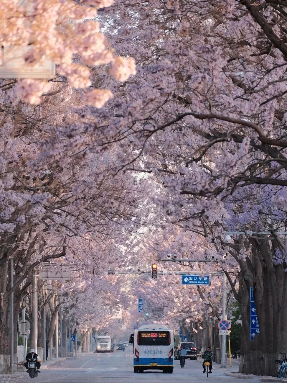 Апрельский ветер скользит по углам улиц пекинского района Ичжуан, и, как и обещано, пробуждаются к жизни павловния Форчуна, растущие по обеим сторонам дороги. Вступившие в период полного цветения павловнии Форчуна усыпаны нежно-лиловыми цветками, которые над дорогой переплетаются в естественный «цветочный туннель». Под дуновением легкого ветерка лепестки нежно опадают, словно идет романтичный фиолетовый цветочный дождь. Нет ничего романтичнее, чем прокатиться на метро по линии Ичжуан, любуясь морем цветов павловнии Форчуна и наблюдая за прекрасной картиной «поезда, идущего к весне».