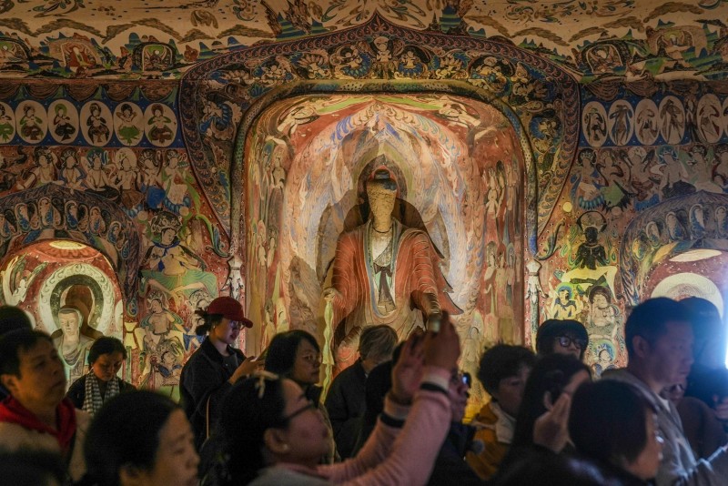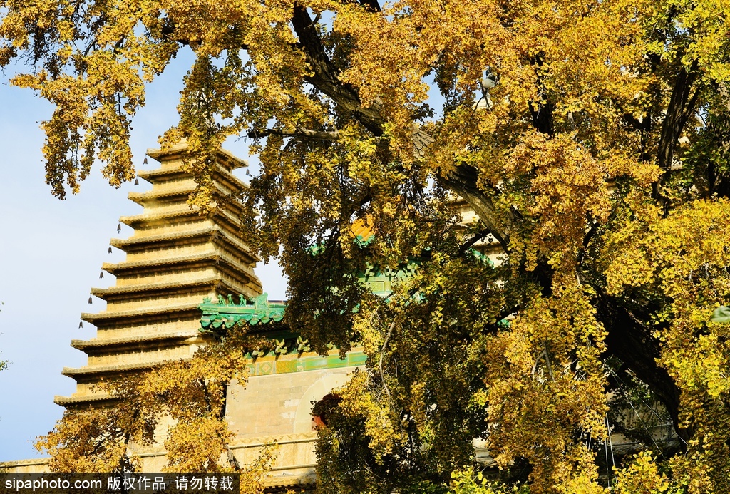 Пекин, 27 октября /Синьхуа/ -- Пекинский музей искусства резьбы по камню, расположенный на территории Храма Пяти Пагод, зафиксировал растущее число туристических посещений в позднюю осень, когда многочисленные деревья гинкго окрашиваются в желтый цвет и образуют золотистое море листьев.